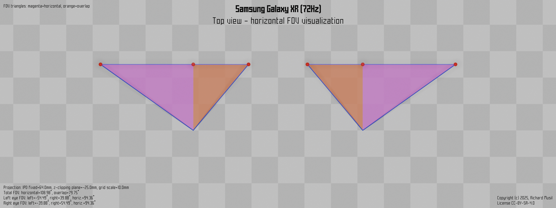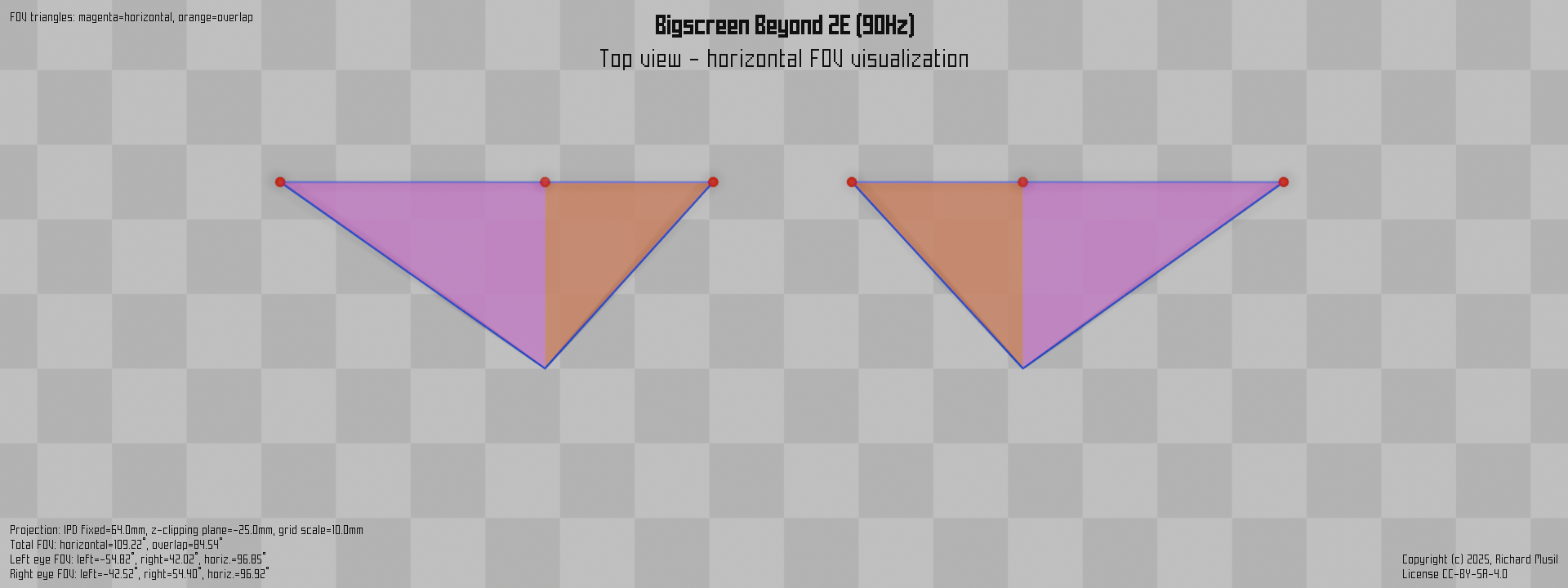 Overlap: Stereo overlap, i.e. the angular range in a horizontal plane at the eye level visible by both eyes.