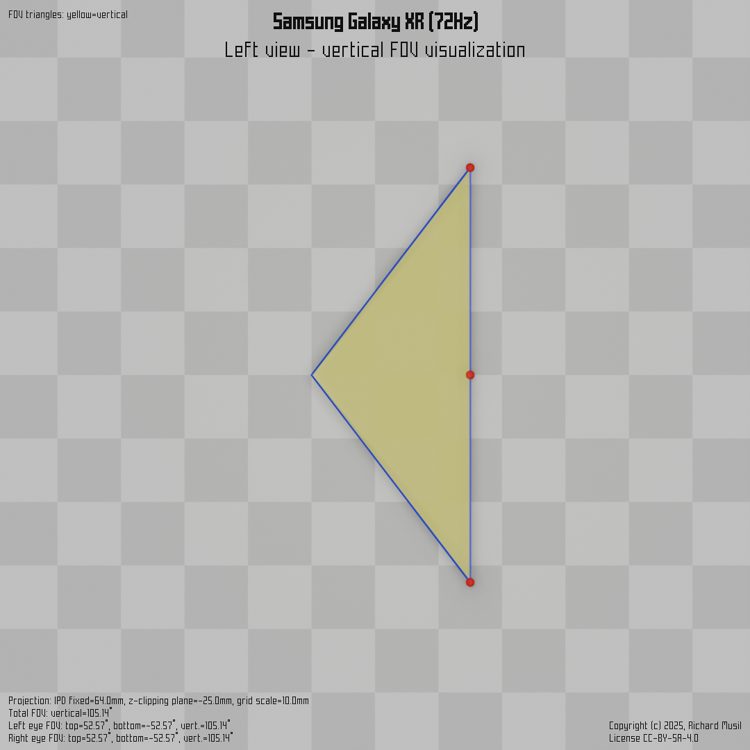FOV ver.: Vertical FOV, i.e. the visible angular range in a vertical plane when looking straight ahead.